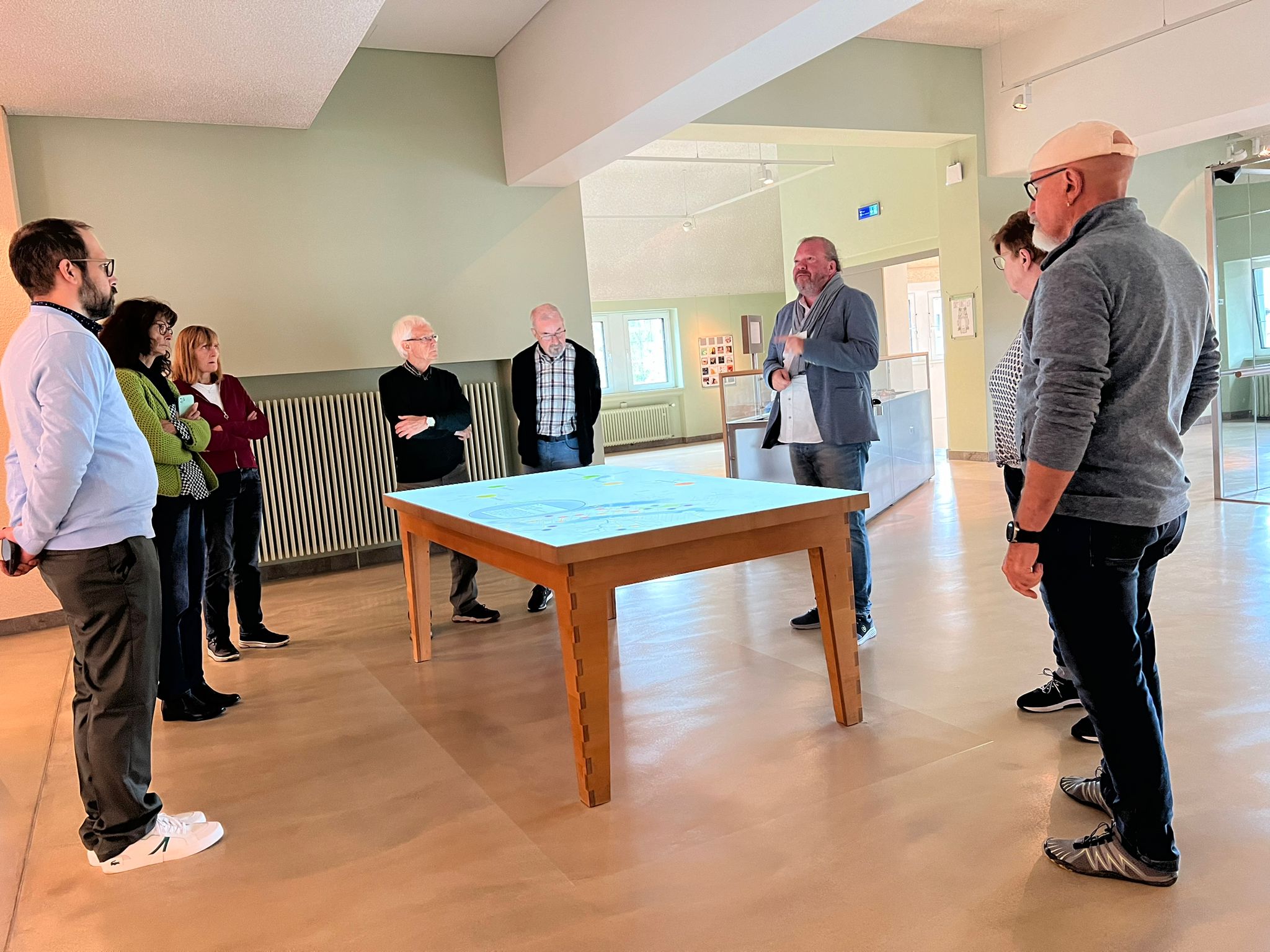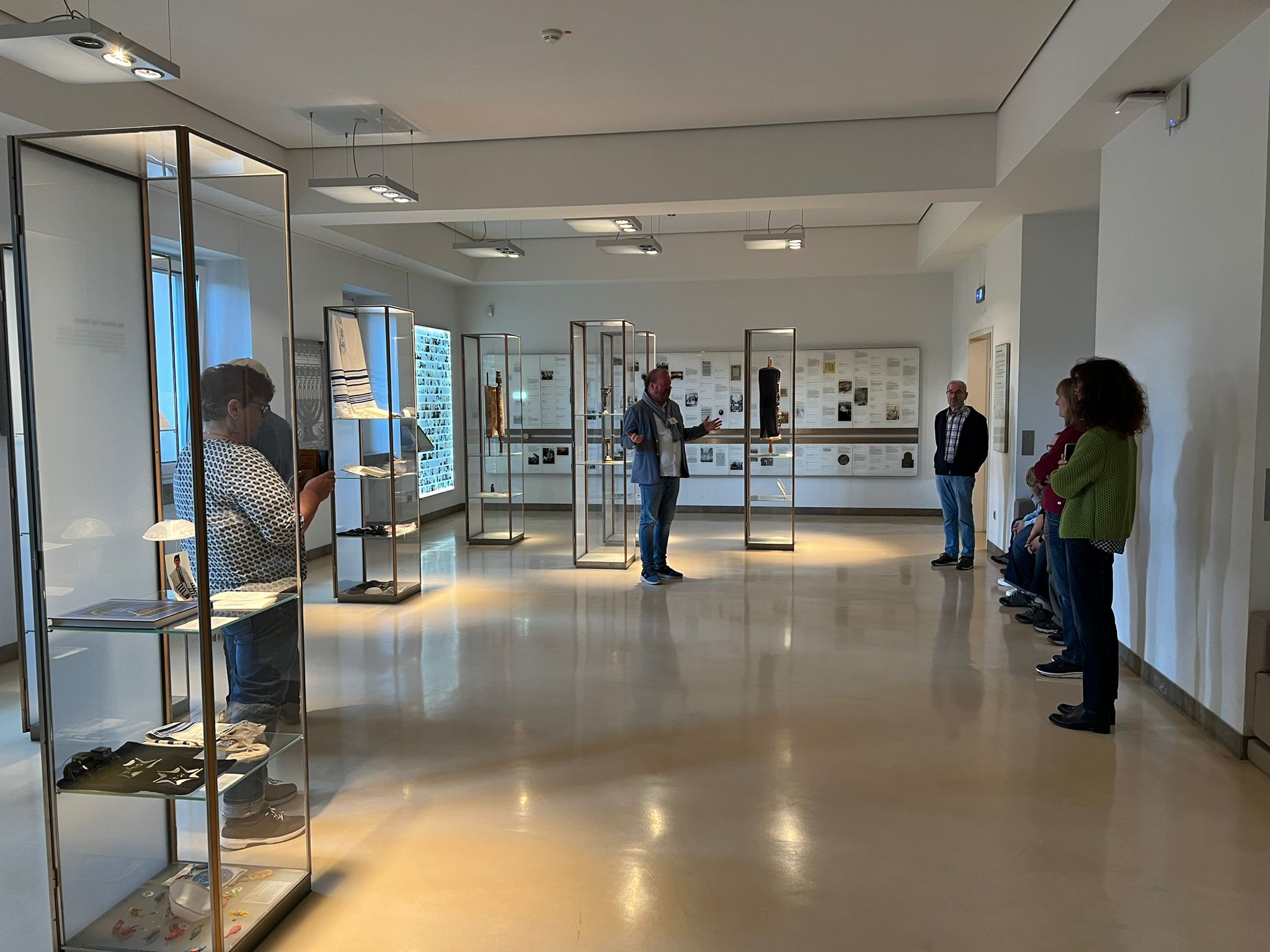 Herr Schmidt hat sich sehr viel Zeit genommen, uns die Synagoge zu zeigen und hat uns dabei, auf humorvolle Art, einiges an Hintergrundwissen vermittelt. In über 3 Stunden haben wir uns die einzelnen Ausstellungen angeschaut. Die Zeit verging wie im Flug. Es war sehr interessant. Durch den Angriffskrieg der Hamas gegen Israel wird in Deutschland der Schutz jüdischer und israelischer Einrichtungen verstärkt. Auch die „Alte Synagoge“ in Essen wird 24 Stunden, rund um die Uhr, bewacht. Auch einige NaturFreund:innen haben unsere Besichtigung, die schon seit Anfang September feststand, aus unguten Gefühlen absagen müssen. Eine kleine Gruppe von neun NaturFreund:innen hat es sich dennoch nicht nehmen lassen: Uns ging es dabei auch um Solidarität, Schutz und ein Signal gegen Gewalt.