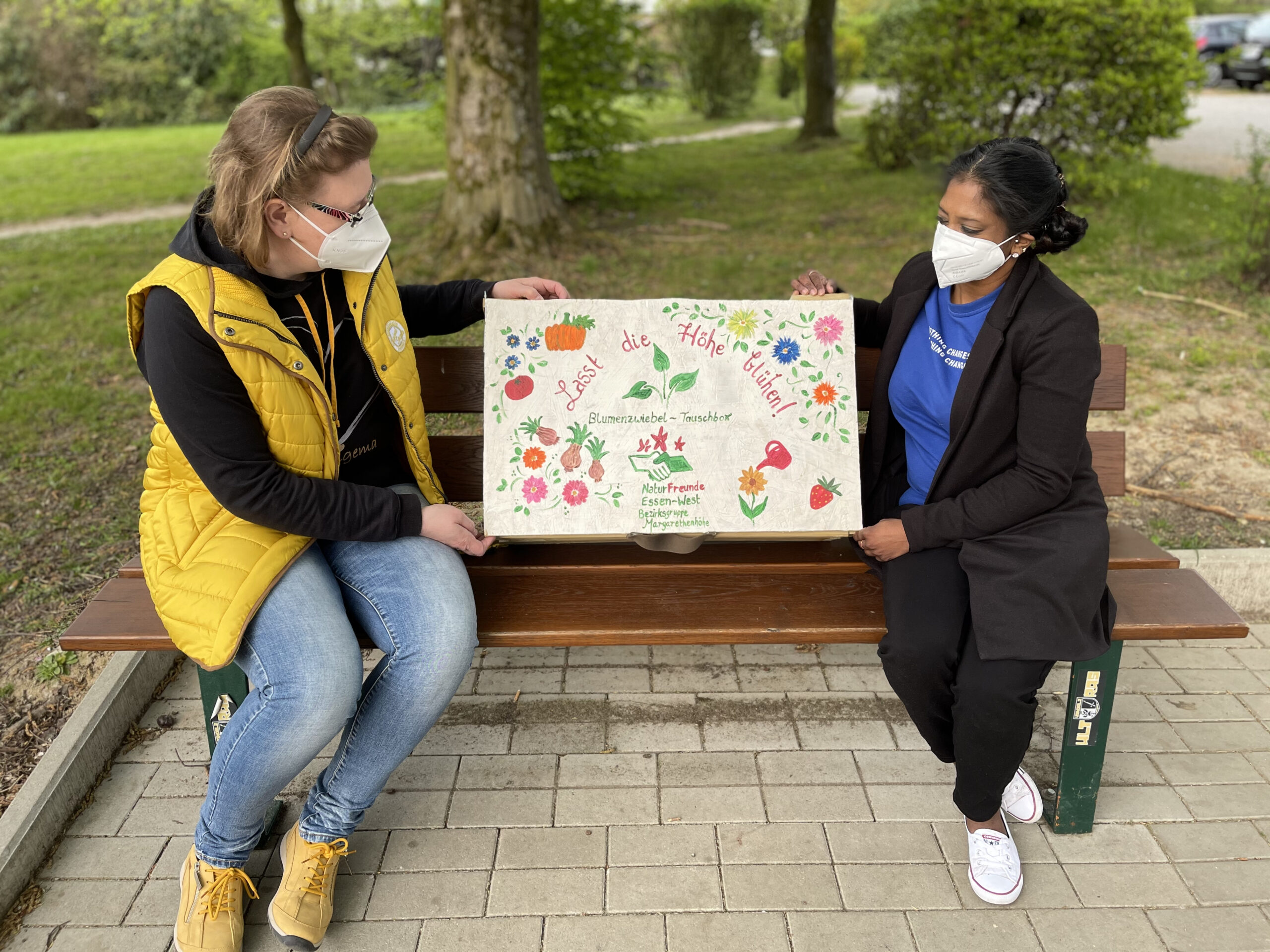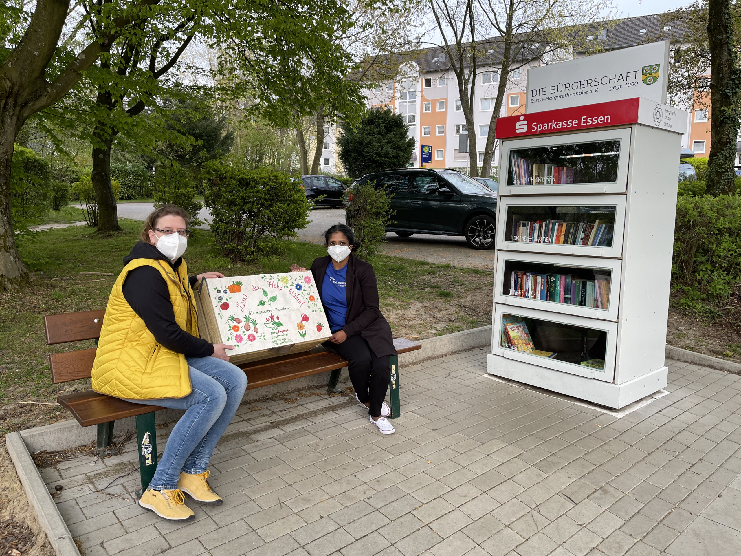 Auch unsere Bezirksgruppenleitung, Hemalatha war von dieser tollen Idee direkt begeistert "Gerade zur Pflanz- und Gartenzeit werden viele Gärten, Blumenkästen und Balkone wieder vermehrt genutzt und wie jedes Jahr nach belieben umgestaltet. Dabei entdeckt doch jeder noch ein paar Blumenzwiebeln, Blumen-, Gemüse- und Kräutersamen, die eigentlich noch gebraucht werden könnten aber zur Zeit irgendwie auch nicht so richtig passen. Daher war unsere Gruppe direkt von der Idee begeistert und hat diese sehr gerne aufgenommen und auch direkt umgesetzt. Es wurde ein kleiner, Regenfester, Kasten gebaut und gestaltet. Da es auf der Margarethenhöhe bereits einen gut genutzten Bücherschrank gibt, wurde auch direkt ein passender Platz gefunden. Wir hoffen und wünschen uns, dass diese Idee im Stadtteil gut ankommt und unser Motto: "Lasst die Höhe blühen" schon bald Realität wird." berichtet Hemalatha Paratharasa über die neue Blumenzwiebel-Tauschbox.