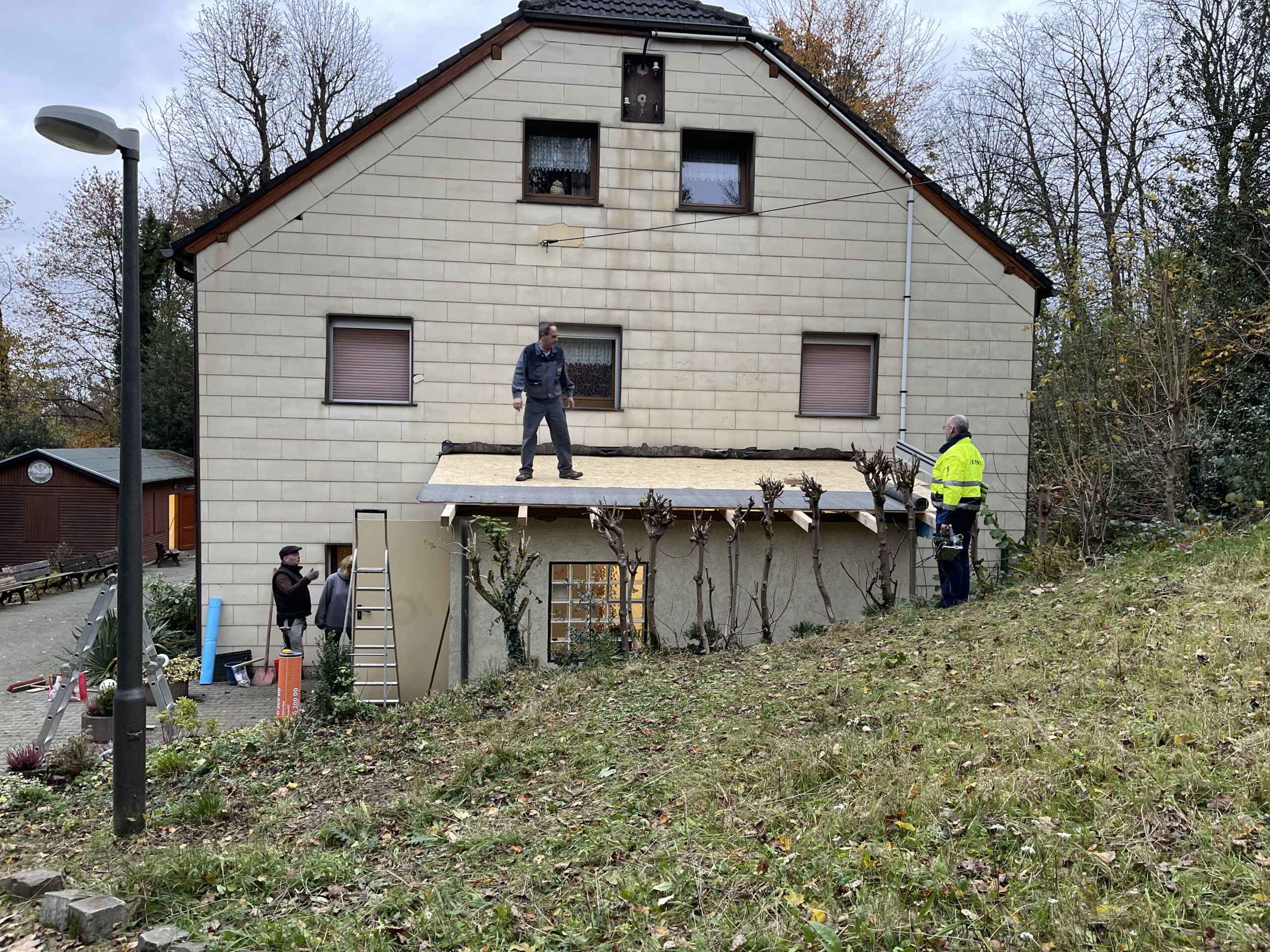 Das dieser Zustand nicht lange so bleiben kann war sofort klar. Direkt nach dem Feiertag wurde sich mit einem Dachdecker und anschließend mit Lieferanten in Verbindung gesetzt, eine Großbestellung aufgegeben und einige Mitglieder haben sich auch direkt bereit erklärt bei der Dachsanierung mit anzupacken.